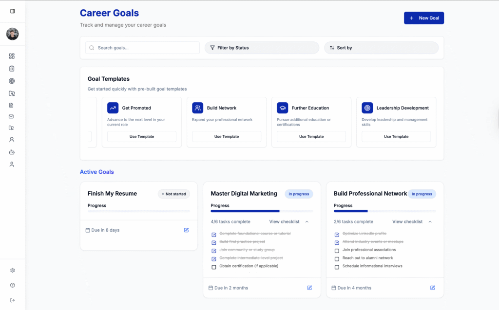 Ascentful helps you plan your career, track your goals, build better resumes, and stay organized every step of the way.